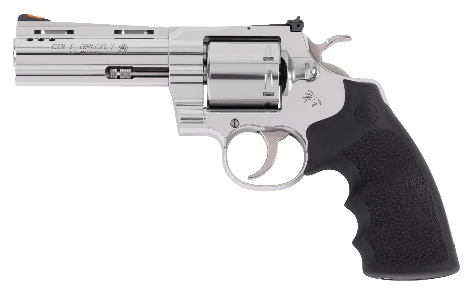 Shooter’s Model are 100% New in the Box products that may have a slight finish imperfection that is not covered by Colt’s one year warranty. The slight imperfection would occur during the manufacturing process and are typically very hard to see except to the well-trained eye or with a magnifier. – FEATURES – The leaf-spring action provides a nonstacking smooth-as-glass trigger pull. – Recoil-absorbing Hogue® OverMolded rubber grips are interchangeable with all Colt Python & Anaconda grips. – Red ramp front sight and adjustable rear sight for windage and elevation. – 1-Piece full lug ventilated rib stainless steel barrel with recessed target crown and ported for muzzle control. – Stainless steel frame with a polished finish and matte surface on the top rib for easier sight acquisition. – Unfluted 6-round cylinder chambered for 357 Mangum and accommodates 38 Special cartridges. – Unloaded Weight 41.1 oz (1162 g) – Capacity 6 Rounds – Frame Material Stainless Steel – Finish Stainless Steel – Barrel Technical 1:14 LH 6 Groove – Barrel Length 4.25 (108 mm) – Overall Length 9.75 (248 mm) – Overall Height 5.75 (146 mm) – Overall Width 1.55 (394 mm) – Front Sight Red Ramp – Rear sight Target Sight adjustable for windage and elevation – Trigger Action Double & Single Action – Trigger Pull Double Action 7-9.5 lbs (31-42N) – Grip Hogue® OverMolded rubber grips