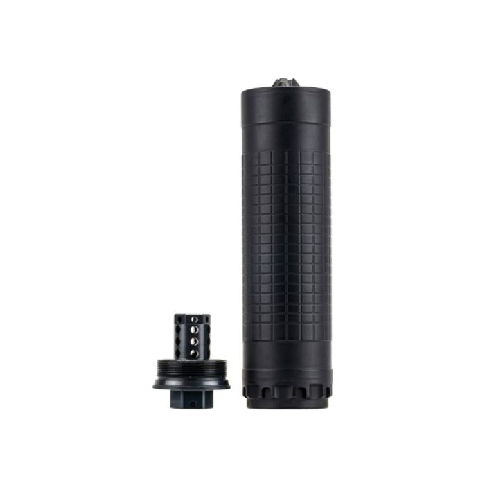 The IWS6 suppressor is a 6mm diameter, reduced back-pressure solution for .223/5.56 and 6mm rifles. Built with weapon-grade nickel alloy and stainless steel, and CNC laser-welded for strength, it handles short barrels and full-auto use while maintaining rifle precision. The Reduced Pathogen design limits toxic gas exposure to the shooter face and supports smooth cycling for longer life in rifle parts and broader firearm compatibility. User-changeable end caps allow tuning for performance with an included vented cap for increased gas flow and a closed cap for enhanced sound reduction.